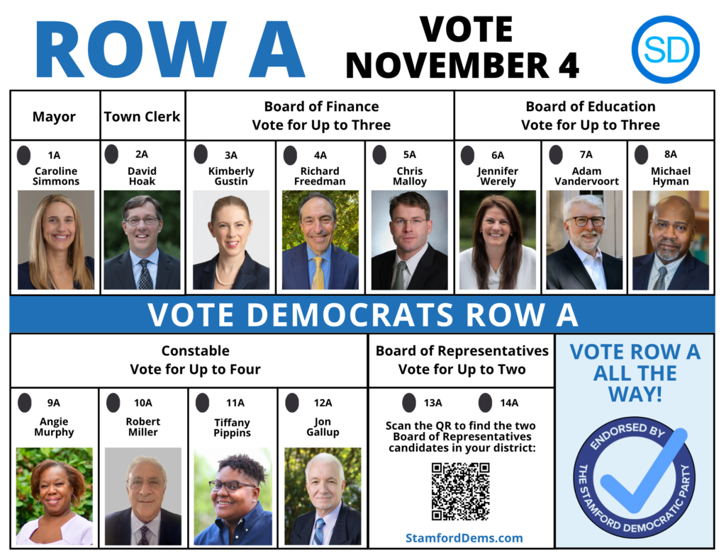 Stamford Democrats info@stamforddems.com or 203-914-1144.