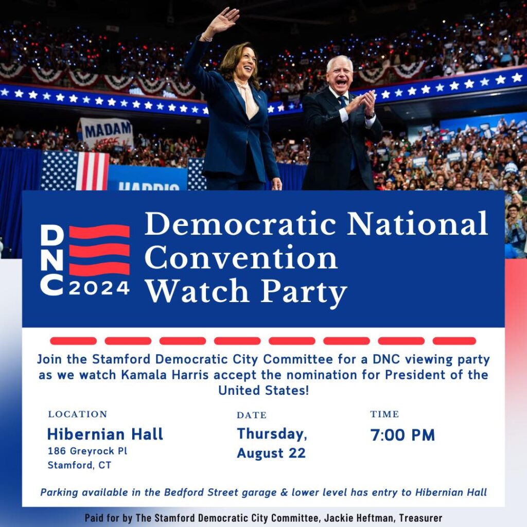 Join us this Thursday, August 22nd at 7:00 pm at the Hibernian Hall to watch Kamala Harris formally accept the Democratic nomination for President of the United States.